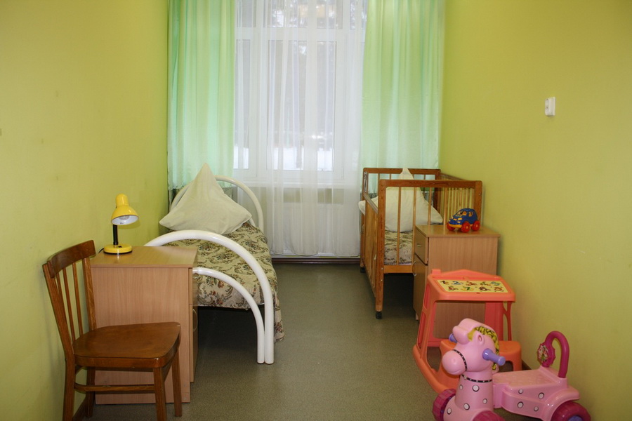 В детских отделениях палаты 5-6-местные; в отделении «Мать и дитя» 2-3-местные.