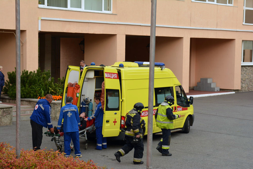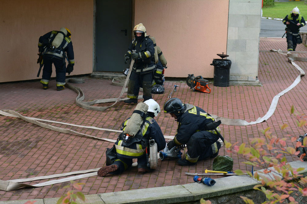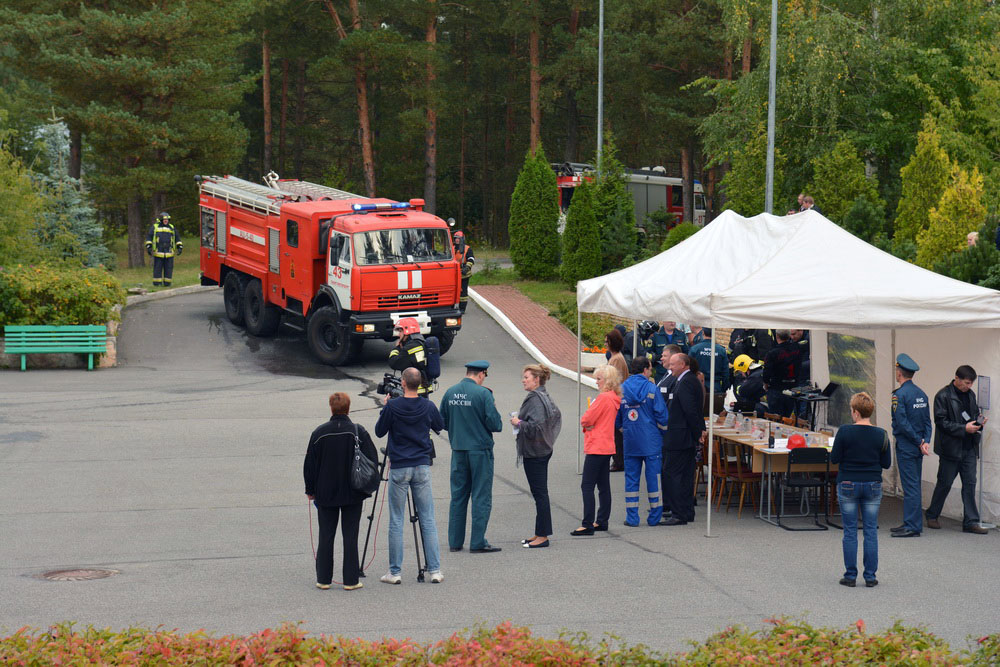 Согласно легенде  на сцене зрительного зала театрально-концертного корпуса санатория произошло возгорание в результате неосторожного обращения с огнем обслуживающего персонала. По сигналу тревоги к месту происшествия прибыли огнеборцы Курортного района. Во время разведки на втором этаже здания были обнаружены трое условно пострадавших, и ещё один – у центрального выхода. Все они были спасены газодымозащитным звеном при помощи средств индивидуальной защиты органов дыхания.